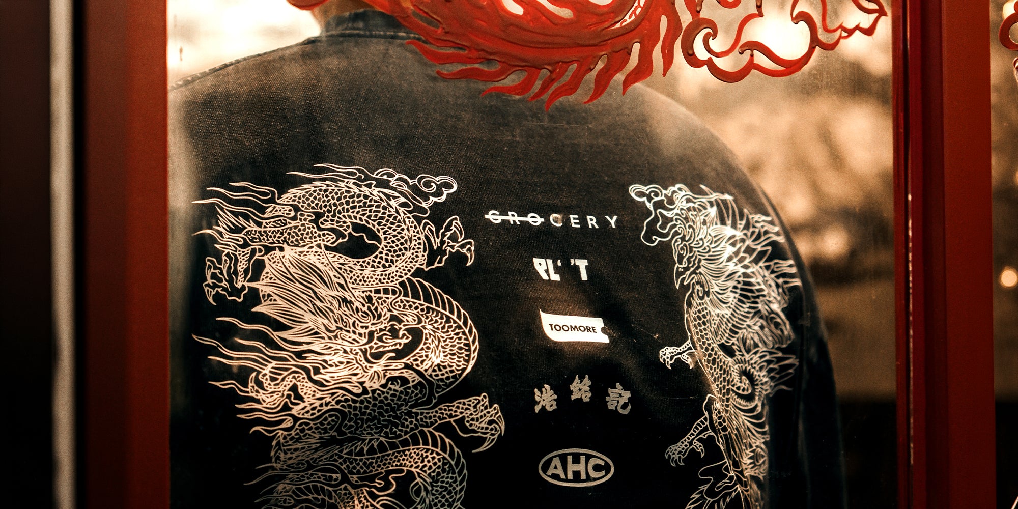 GROCERY CITY HERITAGE DRAGON & PHOENIX WASHED GRAPHIC BOXY TEE/ BLACK