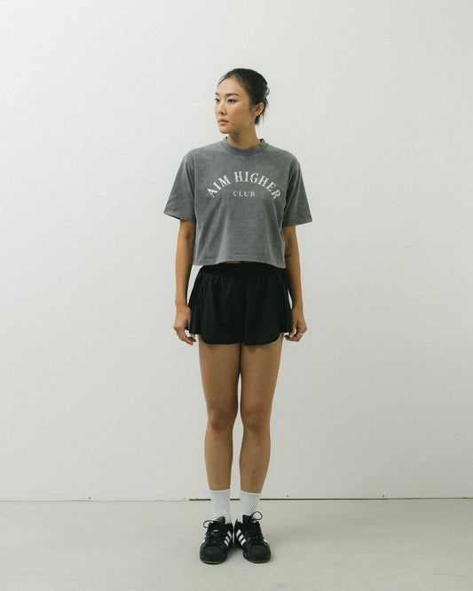 Aim Higher Club Basic Crop Tee/ Washed Charcoal