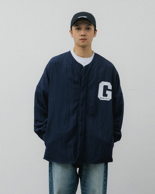 GROCERY G LOGO LONG SLEEVE BASEBALL SHIRT/ NAVY