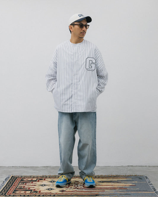 GROCERY G LOGO LONG SLEEVE BASEBALL SHIRT/ WHITE PINSTRIPE
