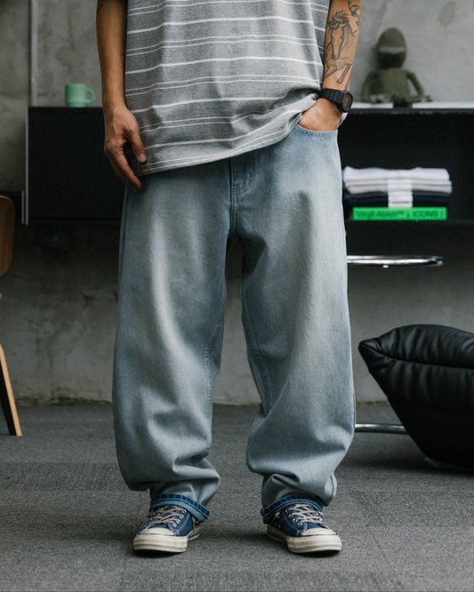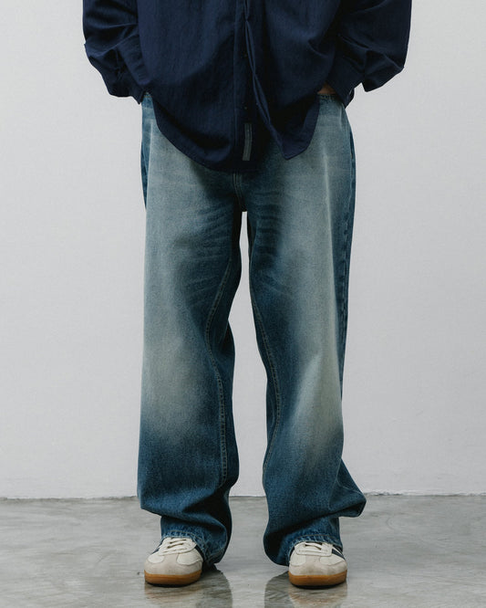 GROCERY BAGGY FADE WASHED DENIM JEANS / FADED BLUE