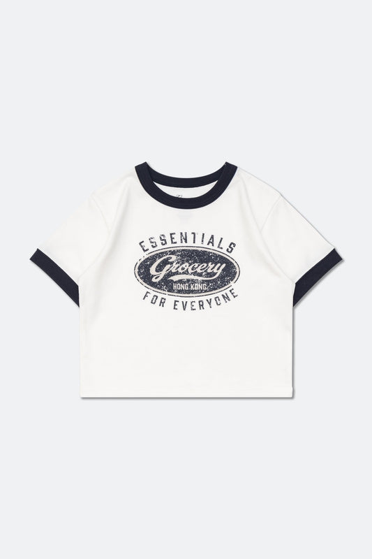 GROCERY LOGO CROPPED RINGER TEE/ WHITE