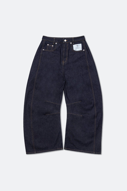 GROCERY RAW DENIM BARREL JEANS/ DARK INDIGO