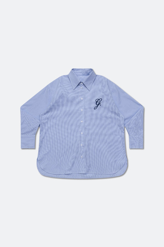 GROCERY STRIPE OVERSIZED BOYFRIEND SHIRT/ BLUE