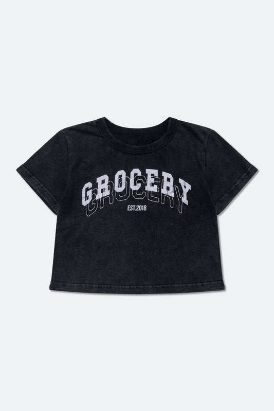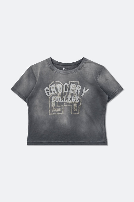 GROCERY WASHED COLLEGE BABY TEE/ FADED GREY