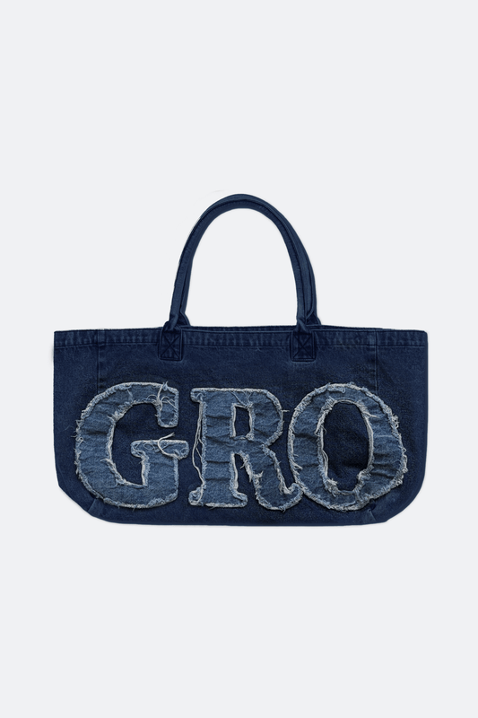 GROCERY DENIM PATCHWORK LOGO SHOPPER TOTE BAG/ INDIGO BLUE