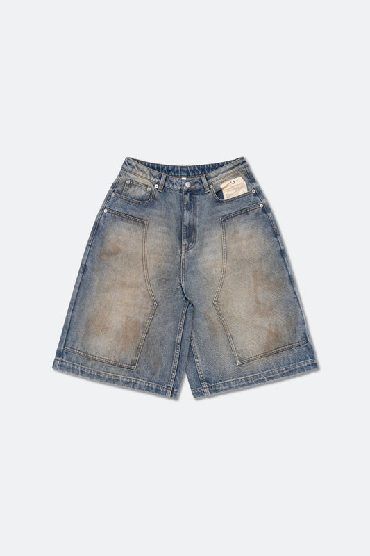 GROCERY DIRTY WASHED DENIM BAGGY JORTS/ DARK WASH