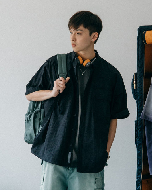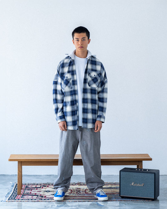 GROCERY DETACHABLE HOOD CHECK OVERSHIRT/ NAVY & WHITE
