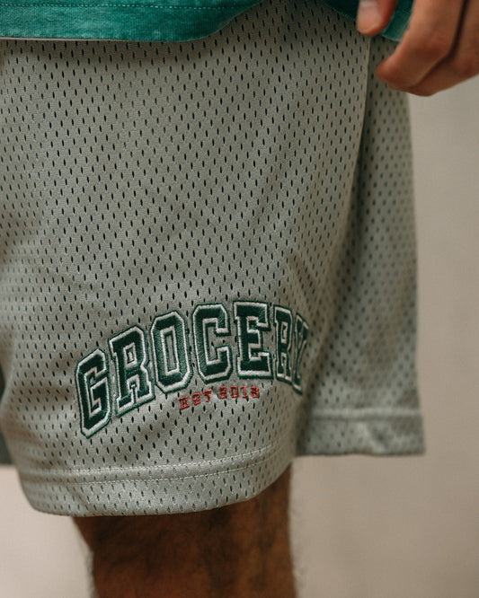 GROCERY SP-014 COLLEGE EMBROIDERY MESH SHORTS/ LIGHT GRAY