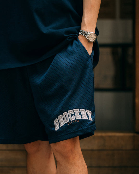 GROCERY SP-014 COLLEGE EMBROIDERY MESH SHORTS/ NAVY