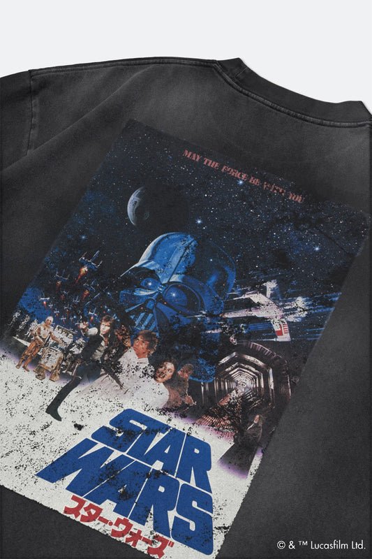 GROCERY STAR WARS A NEW HOPE 1977 JAPAN MOVIE POSTER TEE/ WASHED BLACK