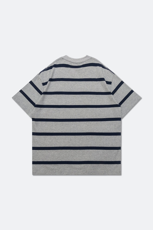 GROCERY EMBROIDERY LOGO STRIPE POCKET TEE/ GREY & NAVY