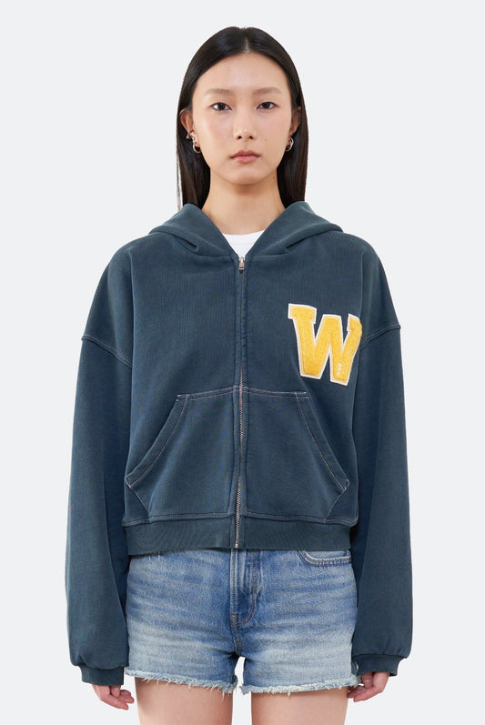 WARM WINTER DAYS VARSITY ZIP UP HOODIE/ NAVY