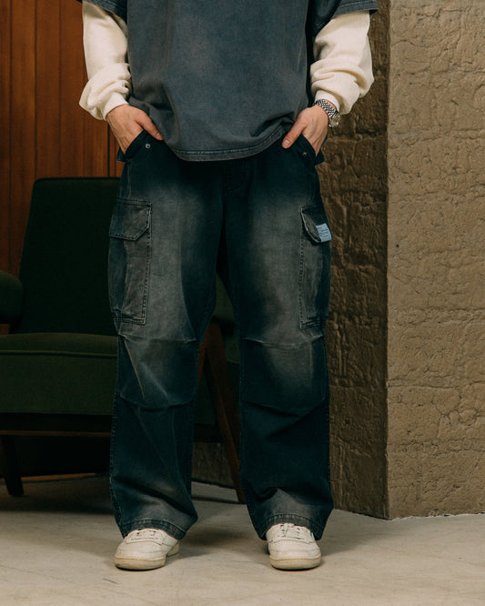 GROCERY WASHED WIDE CARGO PANTS/ FADED BLACK