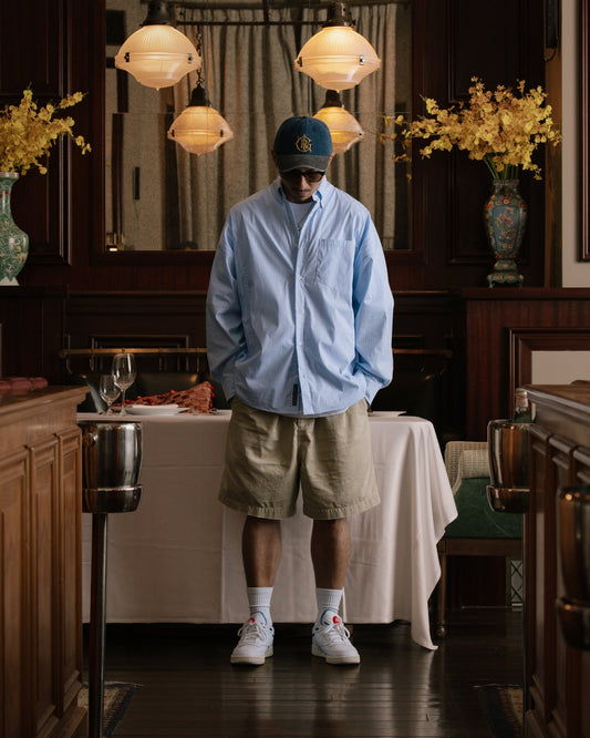 GROCERY TWO TONE PATCHWORK STRIPE SHIRT/ LIGHT BLUE