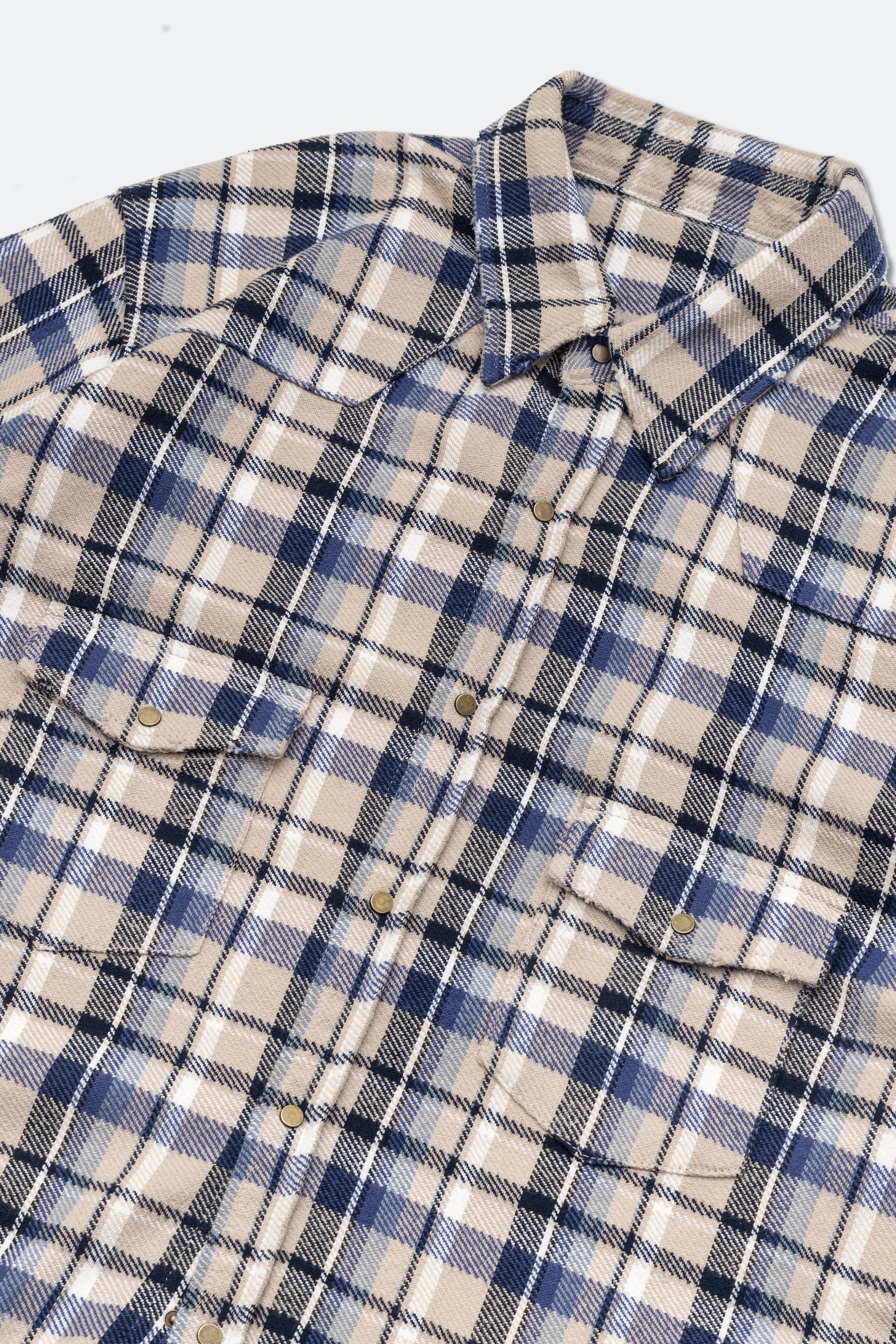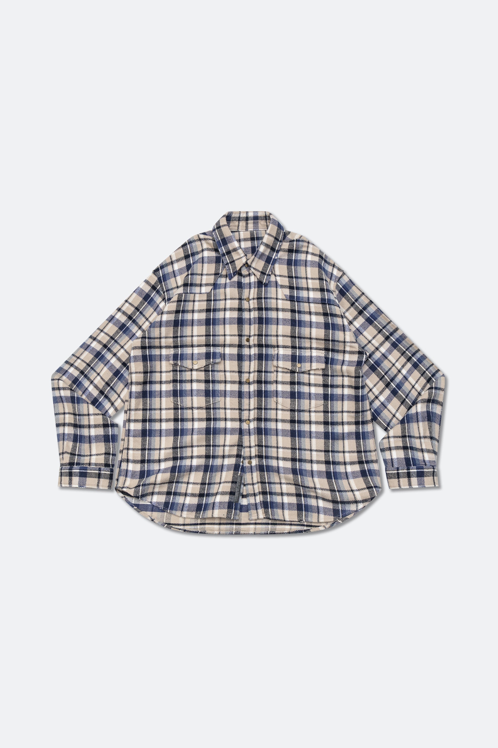GROCERY DOUBLE POCKET FLANNEL SHIRT/ BEIGE & NAVY