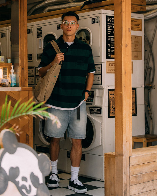 GROCERY PO-004 EMBROIDERY POCKET STRIPE POLO/ GREEN & NAVY