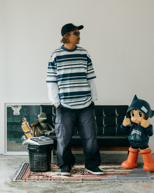 GROCERY TEE-001 INVOICE/ STRIPE MULTI NAVY