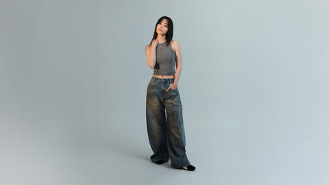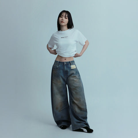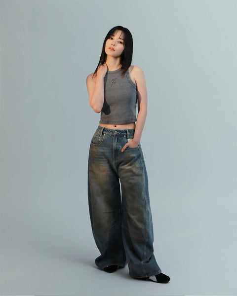 GROCERY DIRTY WASHED BARREL JEANS/ DARK WASH