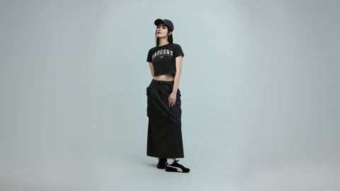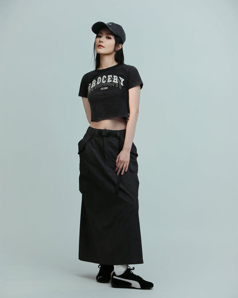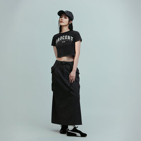 GROCERY NYLON MULTI POCKET CARGO SKIRT/ CHARCOAL