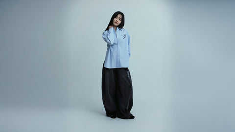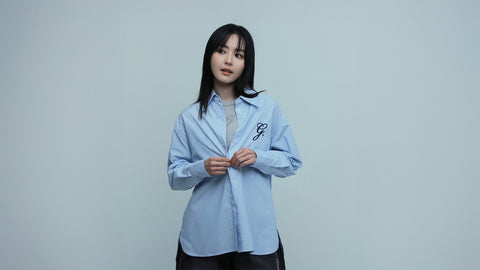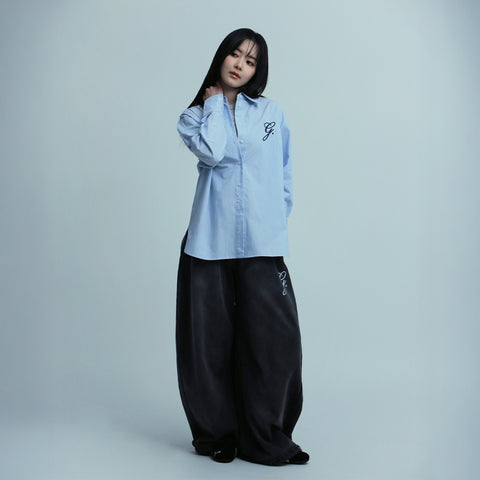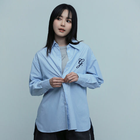 GROCERY STRIPE OVERSIZED BOYFRIEND SHIRT/ BLUE