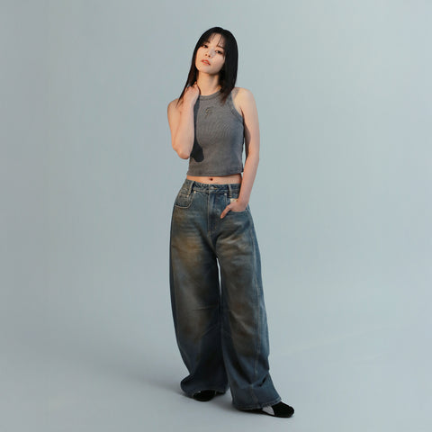 GROCERY WASHED RIBBED TANK TOP/ DARK GREY