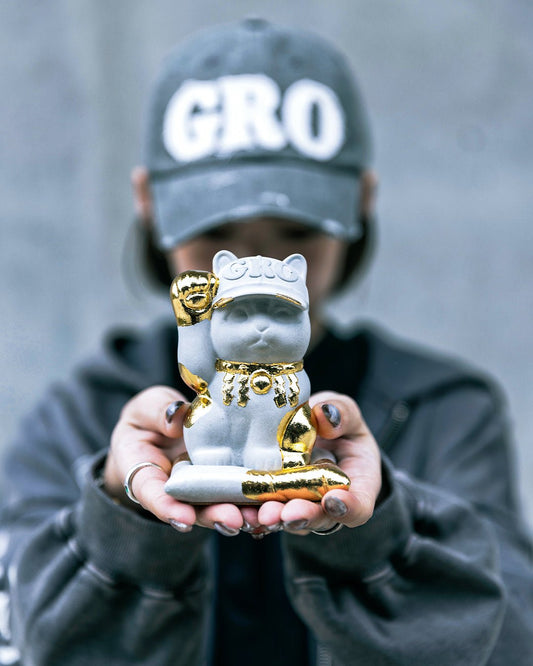 MUDLAB X GROCERY LIMITED EDITION LARGE LOGO CEMENT & GOLD-LEAF LUCKY CAT