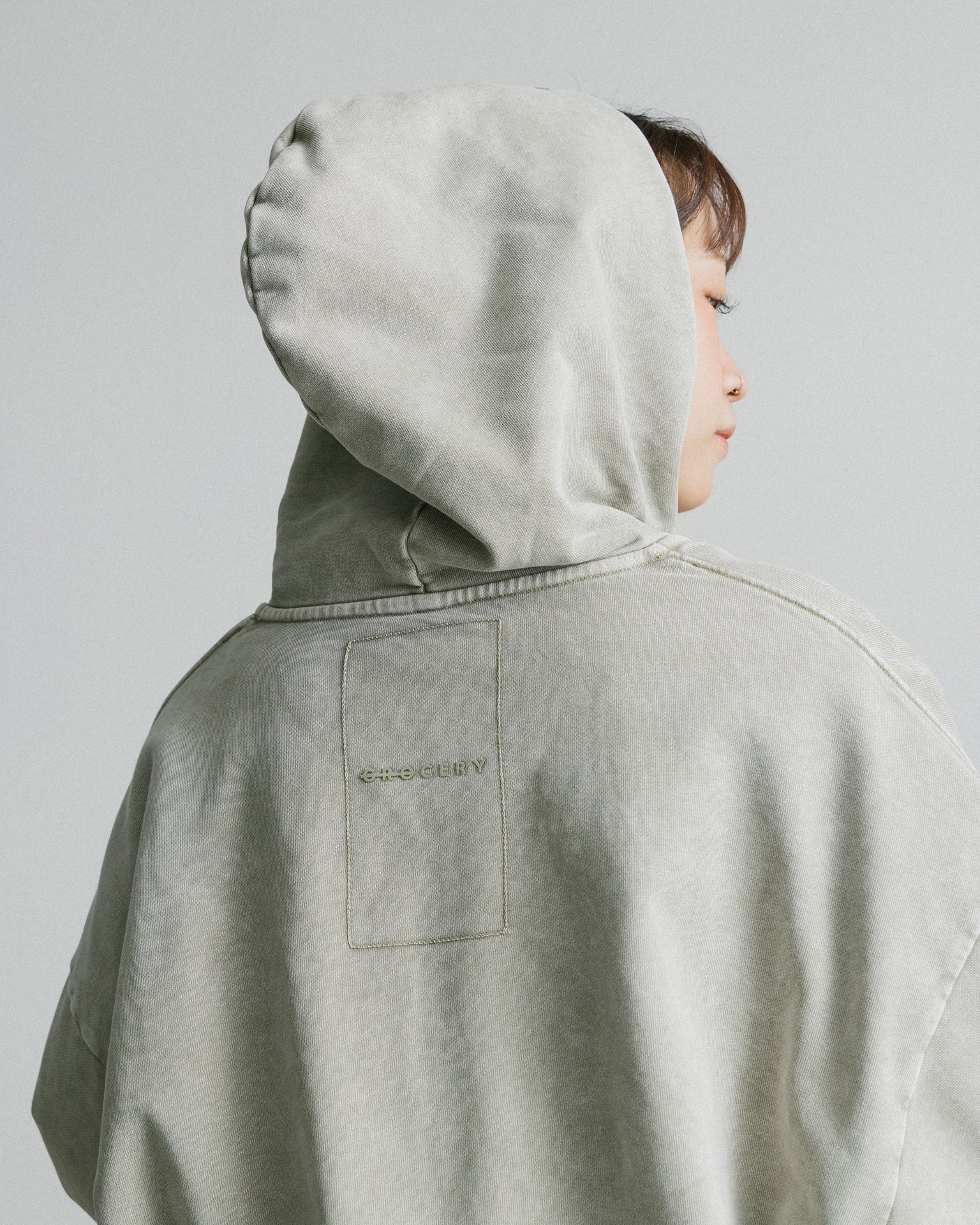 GROCERY BASIC WASHED ZIP UP HOODIE/ GREY OLIVE