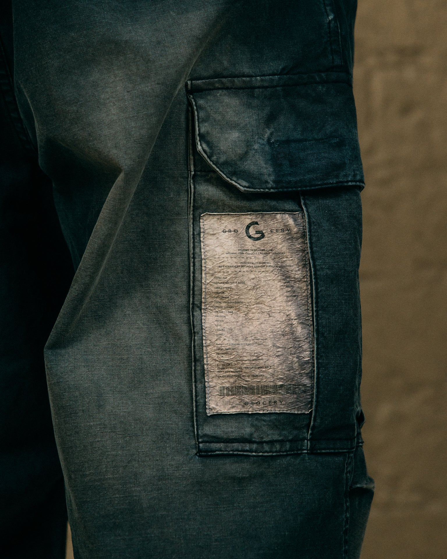 • Washed invoice tag at cargo pocket