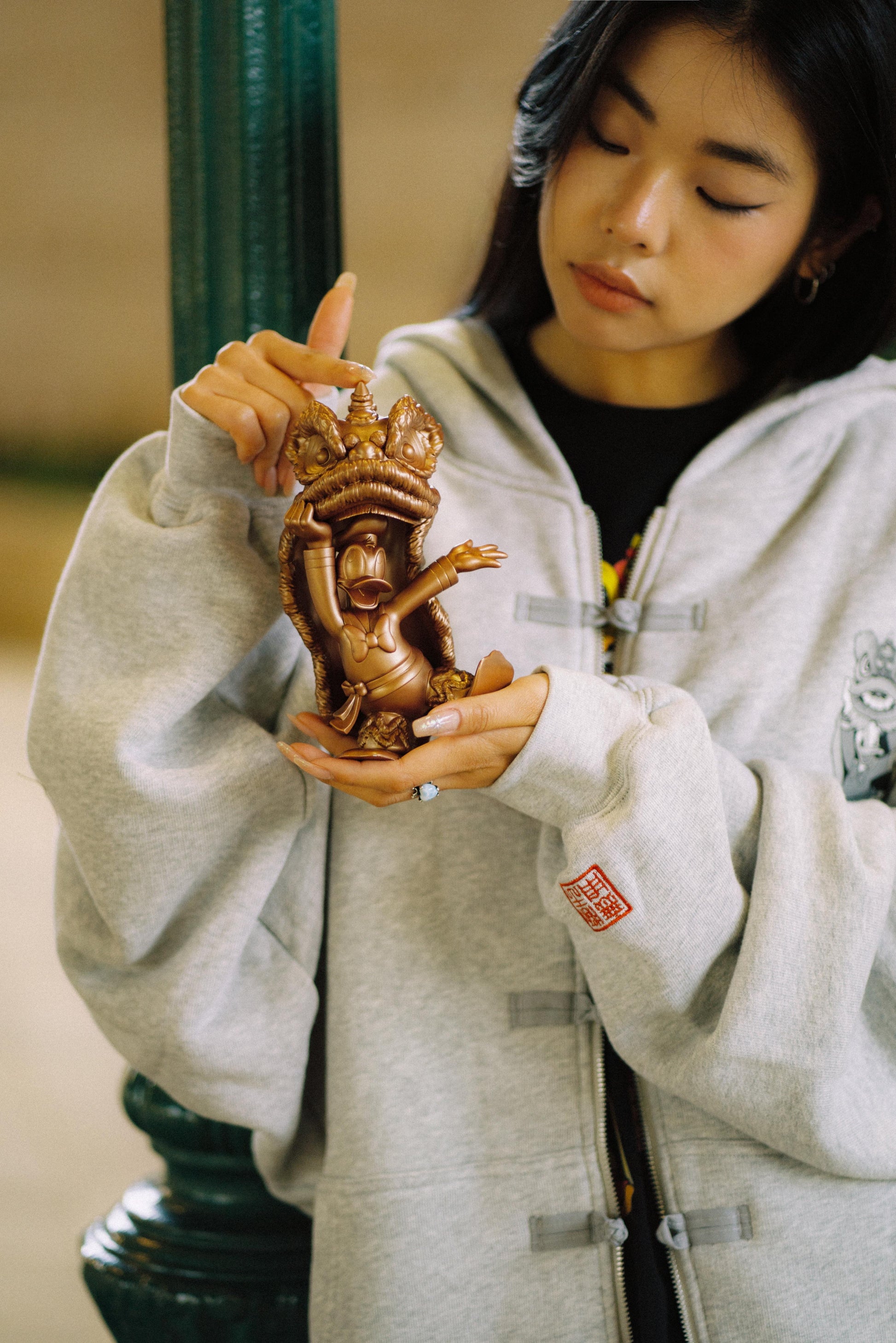 URDU X NEEDLESS DONALD DUCK KUNG FU ZIP UP HOODIE/ GREY