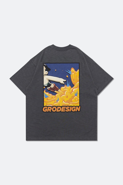 Grodesign - Gun Fire Washed Graphic Tee/ Faded Dark Grey by Rex Koo