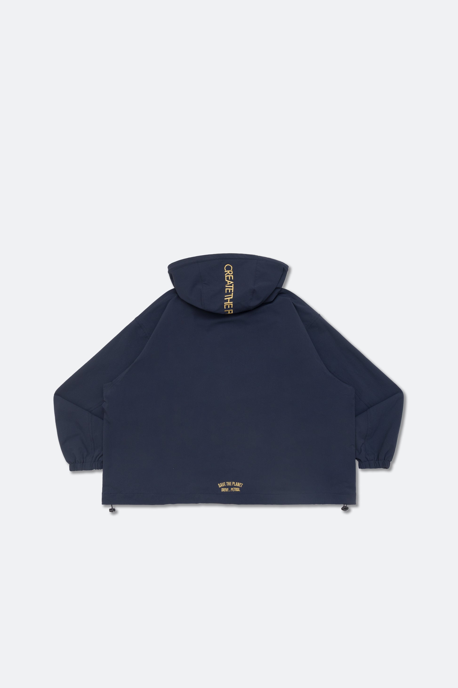 • Bungee-style drawstring at hood and hem